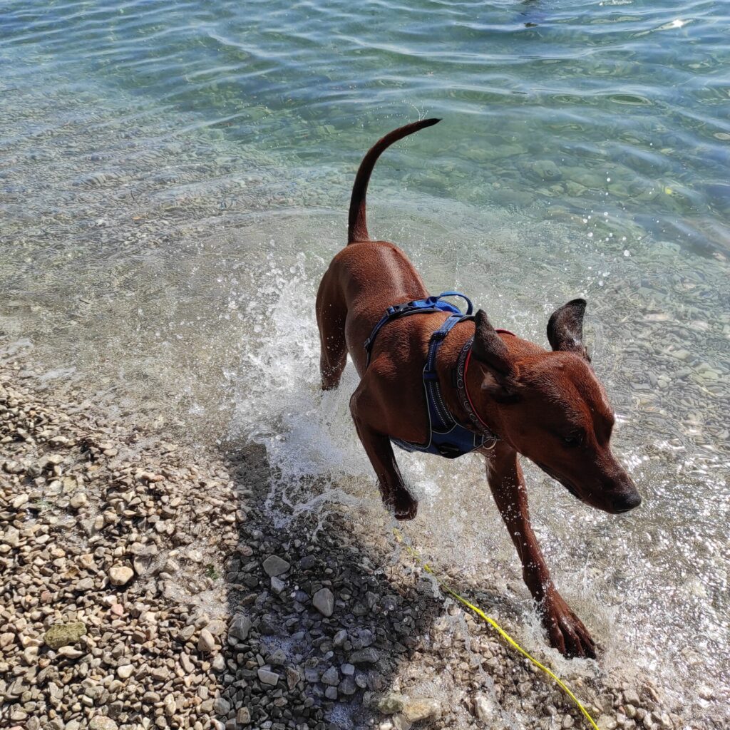Ach ja Rio war heute das erste mal im Meer schwimmen, leider nur ein Bild wie er rausgekommen ist. Anschließend dann auch noch gleich seine erste Dusche und das ohne Gejammer.