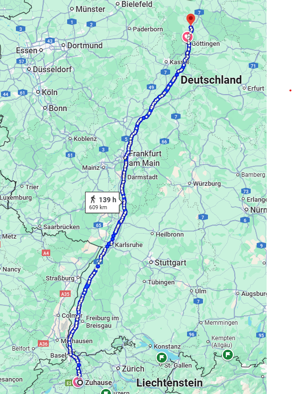 Die Routen sind geplant und auch die Stopps in Dänemark sind mehrheitlich definiert. Heute fahren wir 19:00 Uhr bis kurz nach Göttingen ca. 7 Stunden Fahrzeit, also ungefähr 02:00 Uhr werden wir ankommen und dann schlafen und ausgeruht die zweite Strecke dann morgen angehen.