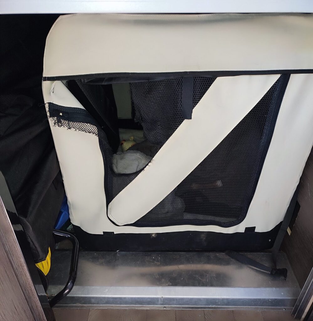 So also wir sind Unterwegs mal wieder über zwei Pässe gefahren und beim zweiten Pass ist es nun geschehen. Rio hat entschieden, ich bleibe nicht mehr in meiner Box. Und schaffe mir nun einen Durchbruch, also Eingang zerrissen und mal Hallo sagen bei meinen zwei Herden Tiere. Wir voller Panik möglichst rasch anzuhalten und Rio wieder zu fixieren bzw. einzusperren. Tja das hat sich dann erledigt der Eingang ist hinüber nicht mehr zu reparieren. Wir haben jedoch Gottseidank oder Fronleichnam sei Dank? Noch eine Alternative, bei der hinteren Sitzbank haben wir über den Gurt die Möglichkeit Rio anzubinden und ein Platz anzubieten.