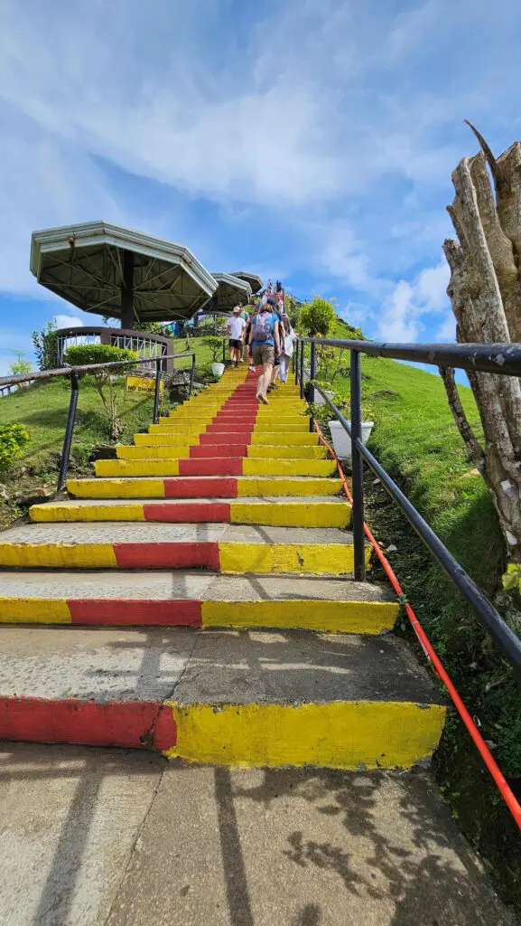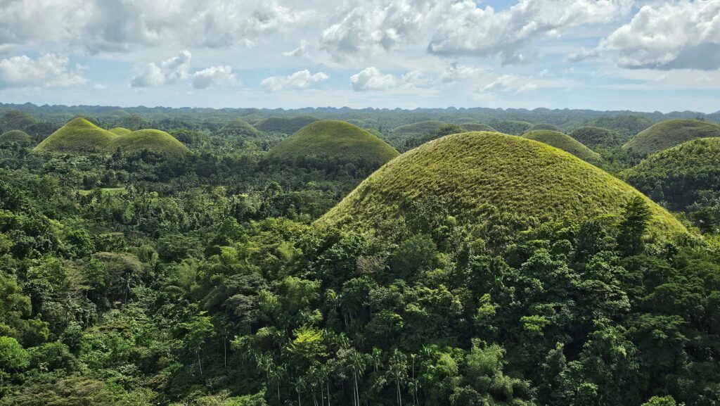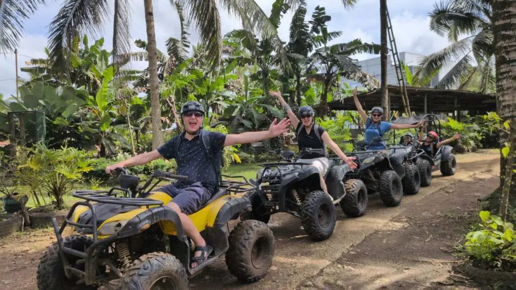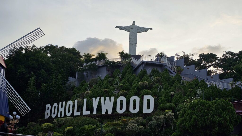 17.12.25: Wir frühstücken und werden um 9 Uhr von einem privaten Chauffeur/Tourguide/Fotograf abgeholt. Er begleitet uns heute den ganzen Tag und fährt uns zu den Sehenswürdigkeiten. Die Fahrt zu Graham ATV (Quad-Verleih) dauert etwa zwei Stunden. Es ist ein Erlebnis, ein Teil dieser Strassen zu sein. Obwohl viel los ist (vom kleinen Tuk-tuk bis zum Lastwagen, Hunde, Fussgänger), nehmen sie Rücksicht aufeinander, mit leichten Hupen als Kommunikation, es scheint gut zu funktionieren. Der Zustand der Strassen ist sehr unterschiedlich, viele werden erneuert, was mein Bagger-Herz höher schlagen lässt. Man sieht viele kaputte Häuser, nicht fertiggestellte Bauten, eher Unterkünfte von ärmeren Leuten, aber trotzdem sehr spannend zu sehen, wie die Mehrheit lebt. Im Quad-Verleih angekommen, schnappen wir uns einen Helm und werden kurz instruiert, dann geht es los, zusammen mit einem Guide. Es ist mega heiss, die Sonne von Oben und der Motor von unten. Trotzdem macht es unheimlich Spass. Danach fahren wir zu den Chocolate Hills, ein hügeliges Gebiet wo man die tolle Aussicht geniessen kann. Danach fahren wir zu einem Wald wo es Tarsier gibt. Das alles macht uns hungrig und unser Fahrer organisiert uns einen Tisch auf dem Floating-Boat auf dem Loboc River (fast wie bei uns die Aare). Es gibt Buffet und Live-Musik – wir kommen aus dem Staunen kaum raus. Danach noch einen kleinen Zoo (Butterfly) und dann steht noch BOHOLLYWOOD auf dem Programm. Ein kleiner Themenpark mit Nachbildungen berühmter Bauwerke. Es dunkelt bereits langsam ein – um 18 Uhr fahren wir zurück zur Unterkunft. Zur Erholung genehmigen wir uns am hauseigenen Pool ein Bier und lassen den anstrengenden Tag ausklingen. Morgen ist definitiv relaxen angesagt.