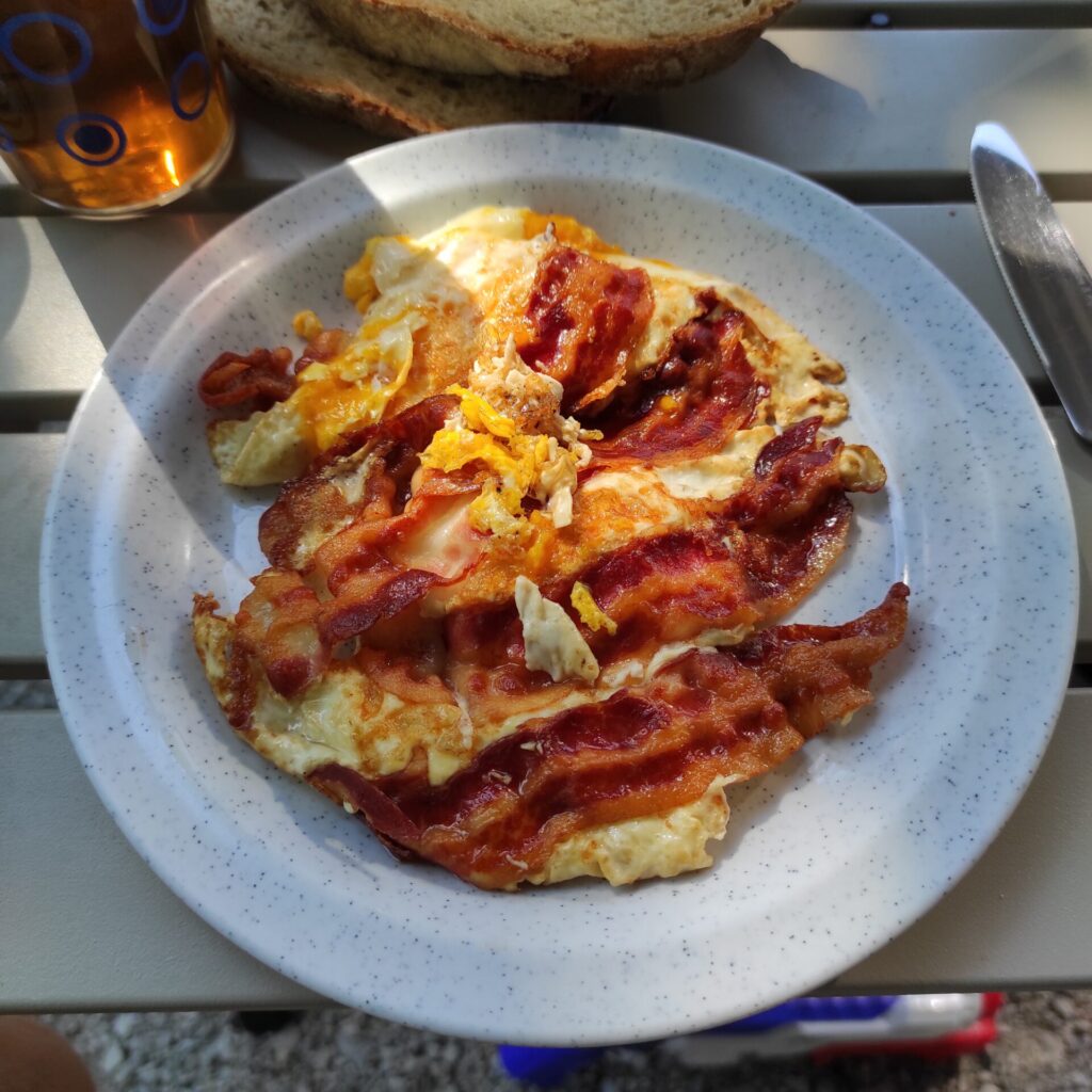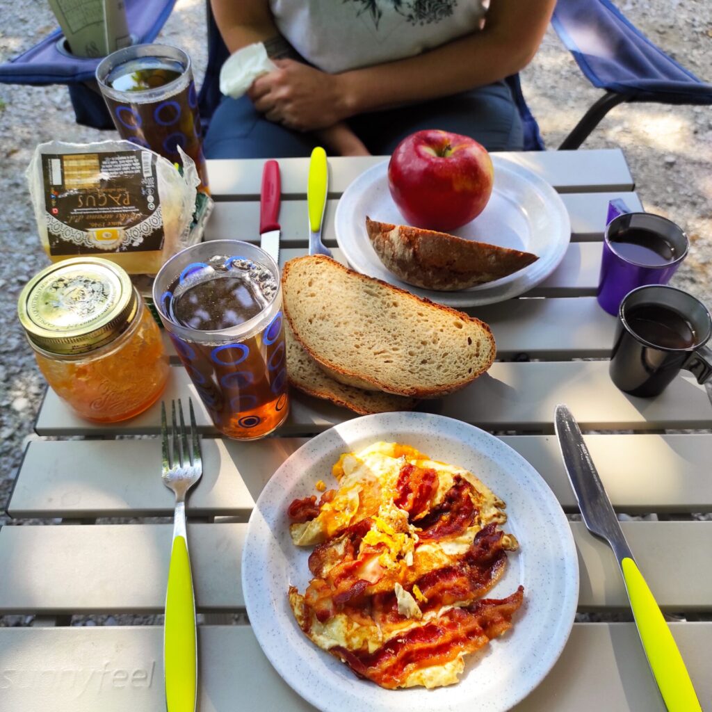 Heute morgen sind Rio und ich bereits um 07:00 Uhr eine Stunde hier in diesem schönen Gebiet rund um den Camping Platz spazieren gegangen. Er hat sich heute morgen mal wieder von der netten Seite gezeigt und das gemacht wo ich wollte, ist ja nicht immer so. Als wir zurückgekommen sind haben wir dann ausführlich Gefrühstückt und noch ein wenig ausgeruht bevor wir dann auf unsere Geschichtsträchtige Wanderung aufgebrochen sind. Leider geht uns die Konfitüre von Muddi (Aprikosen Best ever) aus und nun müssen wir auf unsere Notvorräte zurückgreifen die nur halb so gut sind.