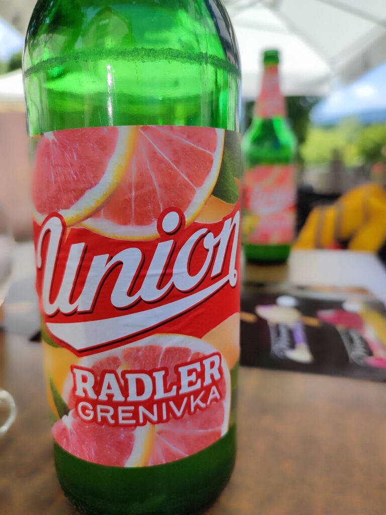 Nach gut zwei Stunden sind wir im Dorf Dolenjske Toblice eingetroffen und haben in einem Gartenbeizli unsere Leistung mit einem feinen Radler begossen und Rio hat im Bächli direkt daneben den quakenden Fröschen zugesehen und sich wohl gefragt was dieses gequake soll.