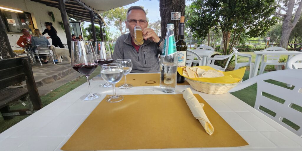 26.4.25: Es ist ein schöner Morgen, alle anderen schlafen noch – wir backen Brot und frühstücken. Danach wird gepackt und losgefahren. Wir haben einen Campingplatz in San Teodoro ausgesucht. Wir fahren die Bergstrasse hoch, über das Hochplateau, lassen Schafherden durch, weiter über Nuoro – es ist sehr schön hier!