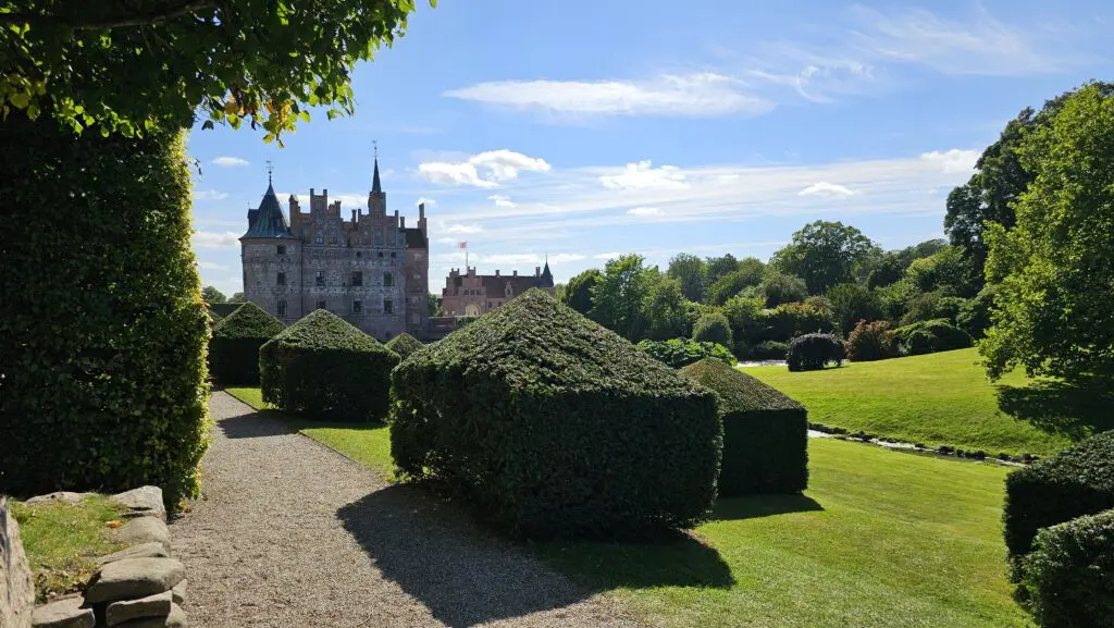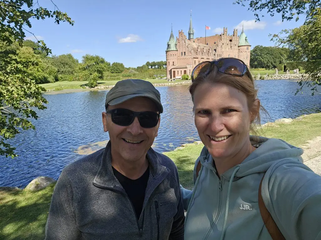 Gleich in der ersten Stadt nach der Brücke gehen wir von der Autobahn ab und fahren über Lland – damit wir mehr von der Landschaft sehen. Richtung Süden ist alles sehr hübsch, eher hügelig, viel Landwirtschaft und kleine Dörfer. Unterwegs halten wir spontan beim Wasserschloss «Egeskov». Es gibt einen riesigen Park, wo Rio auch mit rein darf. Alles riecht extrem gut nach Blumen – man sollte das Ganze in jeder Jahreszeit mal besuchen.