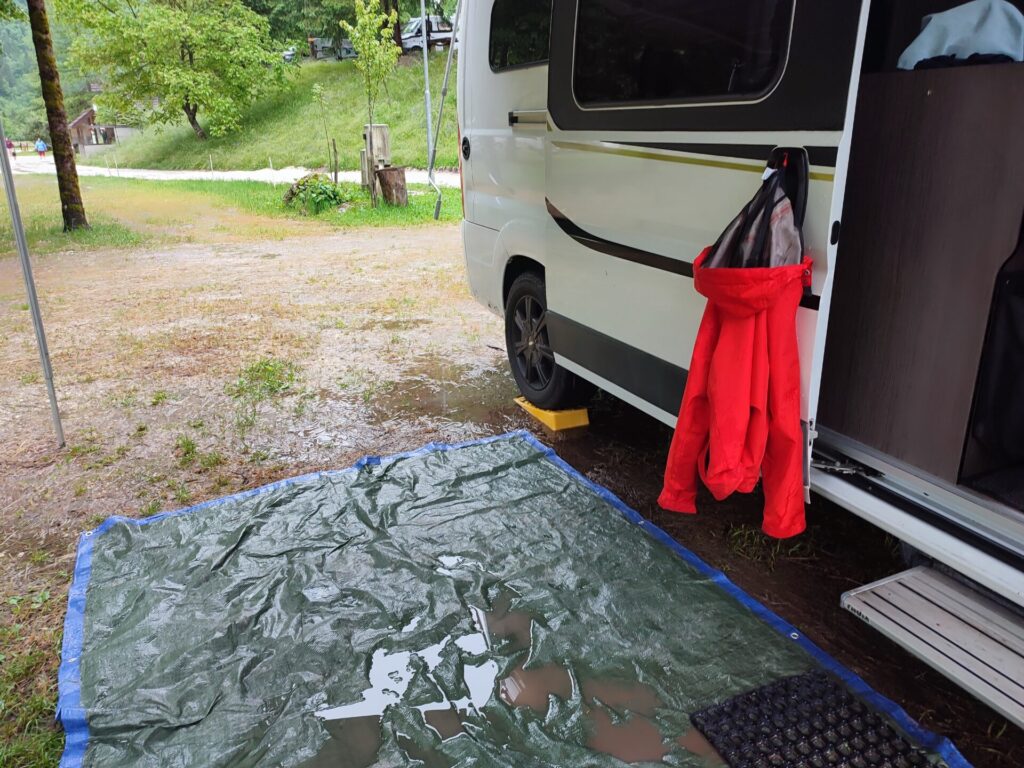Heute ist der letzte Tag in Slowenien. Es ist so schön hier – mit besserem Wetter wären wir sicher länger geblieben. Der Kamp Soca ist sehr gemütlich, es hat viele Besucher mit Zelten und man kann den Platz frei wählen bzw. sich kreuz und quer hin stellen.