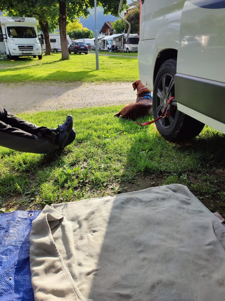 Am Vormittag fahren wir los und nehmen uns den Predilpass vor, Richtung Österreich via Italien. Auch hier sind die Strassen mässig gut, beim Kreuzen mit einem Reisebus wollte ich schon die Seitenspiegel einklappen, so eng war es 🤭. Der Regen ist unser ständiger Begleiter, darum ziehen wir durch nonstop bis nach Lienz. Hier finden wir Platz auf dem Falken-Camping.
