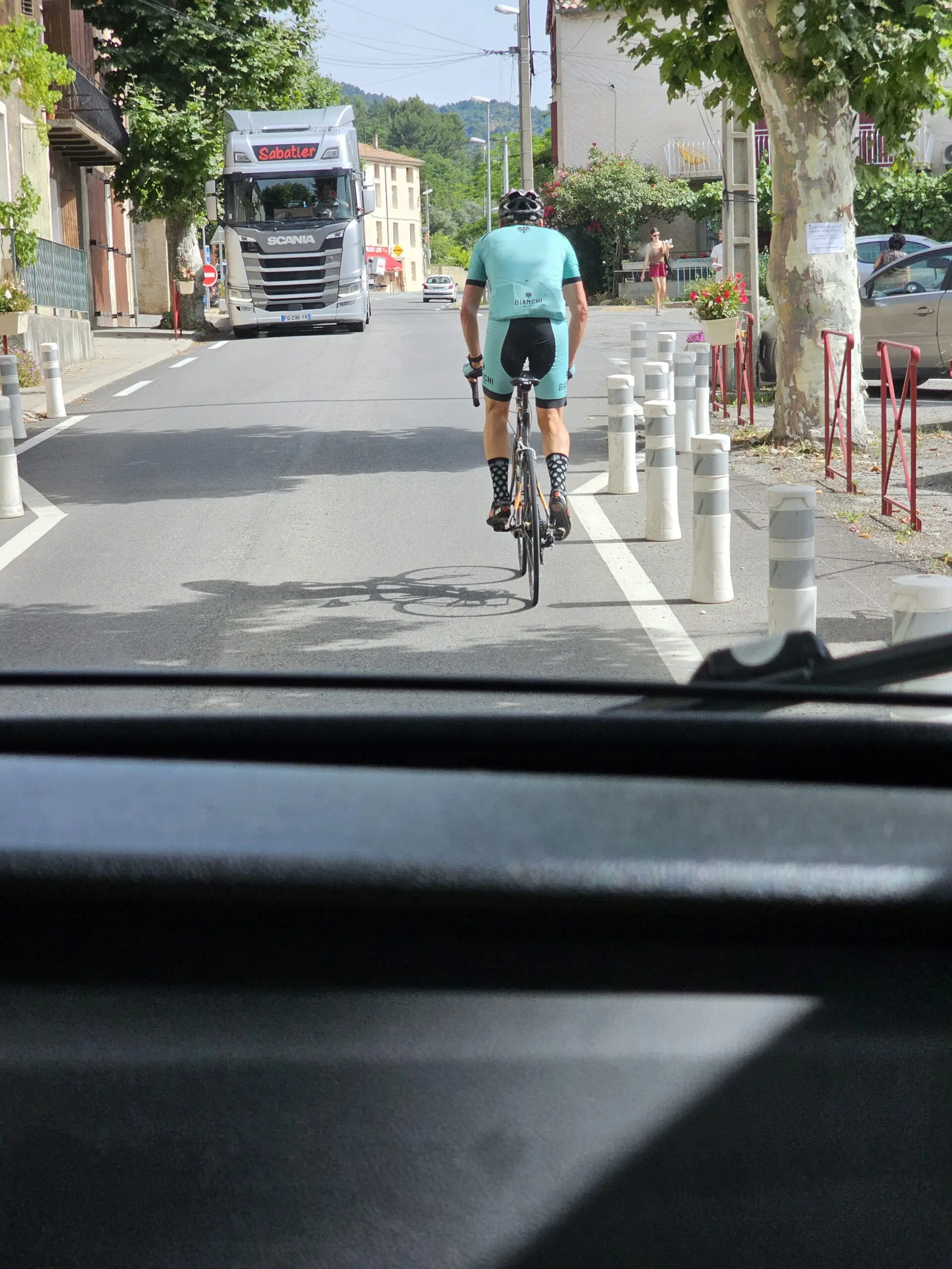 -Radrennfahrer mit passenden Socken, sicher ein Italiener: