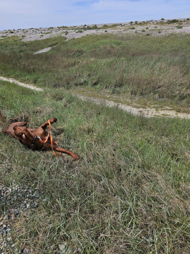 -Haben wir erwähnt, dass Rio bei unseren ersten Ferien in Frankreich beim ersten Stopp auf der Autobahn in Kacke gestanden ist?
