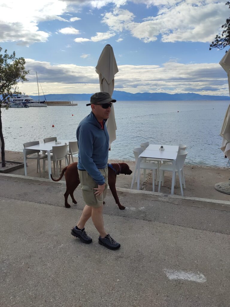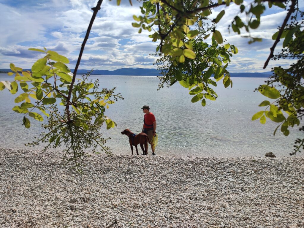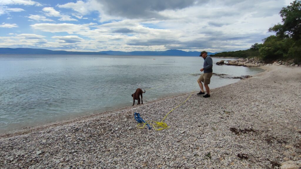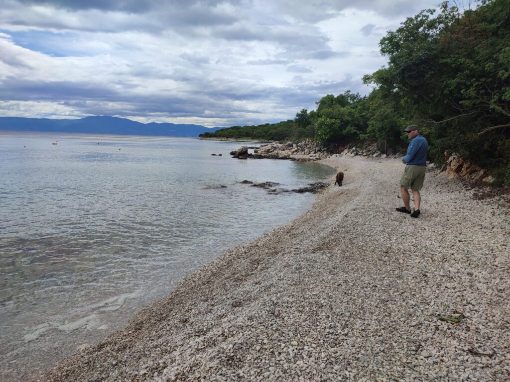 Der Dauerregen in Ljubljana hat uns frustriert. Die Wettervorhersage fürs Landesinnere ist übel, die Sonnenstrahlen auf dem Meteo-Board für die Küstenregion viel verlockender. Wir entschliessen uns, die Route zu drehen und zuerst der Küste entlang in den Süden zu fahren. Slowenien wäre so schön, vielleicht halten wir auf dem Rückweg noch einmal. Also steuern wir Richtung Rijeka (Kroatien). Der Wind ist extrem, ich bin selten mit 60km/h auf der Autobahn unterwegs 😉 dafür belohnt uns das schöne Panorama. Wir finden einen schönen Campingplatz auf der Insel Krk, unser Platz ist direkt am Hundestrand. Da Nebensaison ist, läuft noch nicht so viel. Wir erkunden die Region zu Fuss, Rio nimmt den ersten Schluck Salzwasser und landen schliesslich in einem tollen Restaurant. Etwas betrunken laufen wir zum Camper zurück, setzen uns raus und geniessen den Sonnenuntergang während wir diese Zeilen schreiben… Öich ä schöne Obe 😘