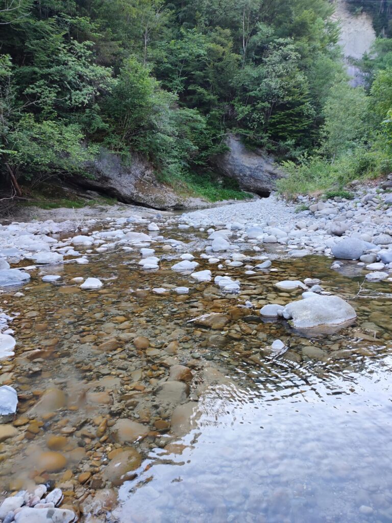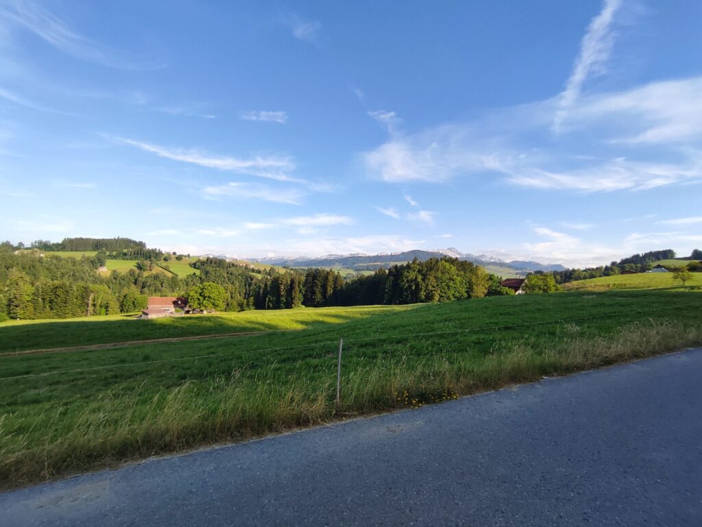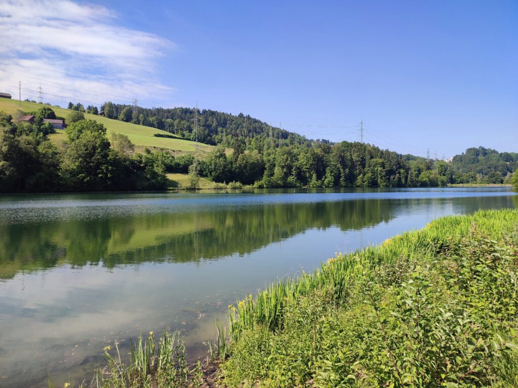 Gestern bin ich bereits früh mit Rio runter zum Gübsensee. Dort kann man gemütlich rund um laufen und auch baden gehen. Es ist so schön bei diesem Wetter unterwegs zu sein. Am Nachmittag sind wir wieder zurück und legen uns in den Schatten. Am Abend zaubere ich mir mein Geburi-Menü. Als wir den Abendspaziergang in Angriff nahmen, ist Rio leider bei der steilsten Stelle in den Elektrozaun geraten und hat mich ein Stück weit mitgenommen inklusive Leine, welche sich in meinen Händen eingebrannt hat. Tja, meine Hand-ID hat sich etwas verändert 😉, aber nicht so schlimm. Mein rechtes Bein ist auch etwas lädiert… inkl. Loch in der Hose… trotzdem sind wir noch bis zur Urnäsch (Bach) hinunter, ich hatte sie etwas grösser erwartet. Bei allen, die beim Wort «Urnäsch» ins Grübeln (oder Schwitzen) kommen – ja genau dort ging man früher in die Landschulwoche.