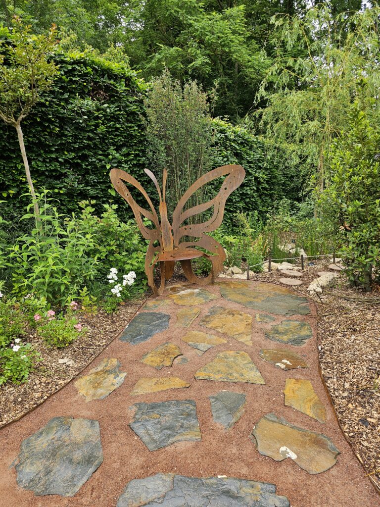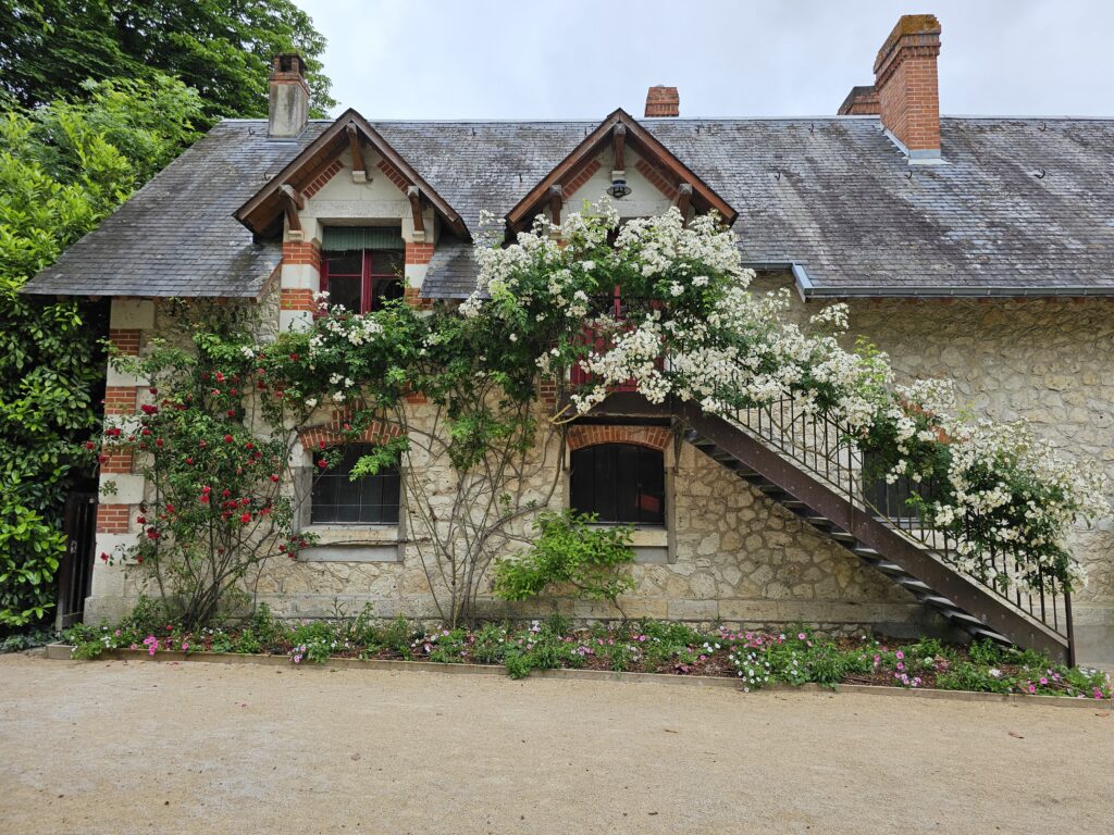 Scheinbar wird ein Trakt noch von der Besitzerfamilie bewohnt – ein sehr schönes Anwesen. Wir fahren auf der Autobahn zirka zwei Stunden weiter, bis wir Hunger haben und halten bei der nächsten Raststädte an. Hier ist tatsächlich eine AdBlue-Tanksäule. Keine Ahnung wie man das tankt, ich muss im Shop nachfragen. Der Typ behält meine Karte als Pfand und schaltet die Säule frei – spezielle Vorgehensweise. Wir kaufen uns Sandwiches und fahren etwas später wieder weiter. Die nächste Besichtigung widmen wir dem Schloss Chaumont. Hierfür haben wir uns bewusst entschieden, es soll sehr schön sein. Schon an den vielen PWs auf dem Parkplatz wird uns schnell klar, dass es einige Besucher hat. Auf dem WoMo-Parklpatz finden wir, wie immer ausreichen Platz zum Parkieren. Da muss ich den Franzosen ein Kompliment machen, das ist ein Camper verrücktes Land und hat dafür ausreichend Infrastruktur. Henä überlegt sich, ob er mit Rio anderswo spazieren soll, entscheidet sich dann dafür, doch mitzukommen. Beim Eingang sagen sie uns nur, dass er nicht in die Räumlichkeiten darf, sonst Hunde erlaubt. Sie kontrollieren sogar Taschen und Rucksäcke, ob man verbotene Gegenstände dabei hat. Das ganze Gelände ist riesig, der Garten sehr schön hergerichtet, verschiedene Künstler dürfen sich verwirklichen. Wir kommen aus dem staunen nicht mehr raus. Die vielen Blumen, alles riecht so gut. Nach 1.5h haben wir genug, es wäre noch viel zu sehen aber es regnet schon einen Moment lang. Im gleichen Dorf finden wir einen Campingplatz (Camping municipal – Grève de Loire), wo wir heute Nacht liegen werden. Jetzt kann ich mich nicht entscheiden, welche Bilder ich hier reinstellen soll.