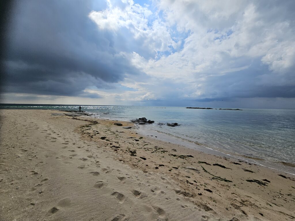Bevor wir den Weg nach Mont Saint-Michel in Angriff nehmen, fahren wir zum Strand von Réville, dort ist ein Restaurant (Le Goéland) welches so tolle Bewertungen hat. Leider hat es noch nicht offen, als wir ankamen. Dafür entschädigen die Bilder