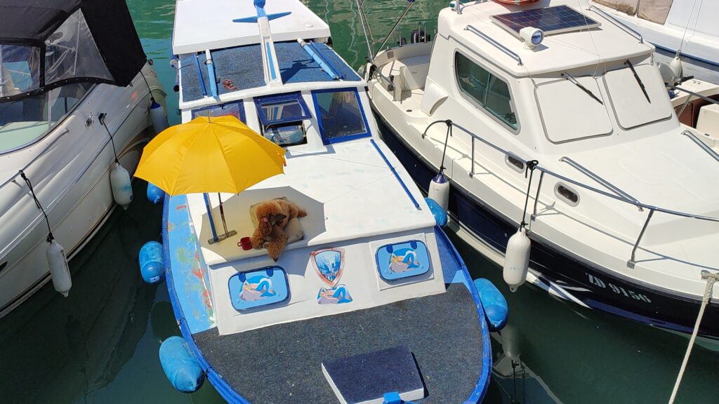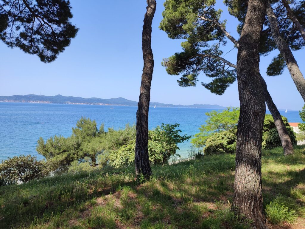 Wir fahren zirka eine Stunde weiter auf der Hauptstrasse bis nach Zadar, dort finden wir nach kurzer Zeit einen geeigneten Parkplatz und laufen zur Altstadt. Es ist mittlerweile Mittag, die Sonne brennt und wir sind in den schattigen Gassen unterwegs. Die Stadt ist sehr touristisch, es hat viele Leute – oder einfach nur weil Sonntag ist? Trotzdem sehr schön! Kurzquiz: wer findet den Pudel (auf dem ersten Bild unten)?