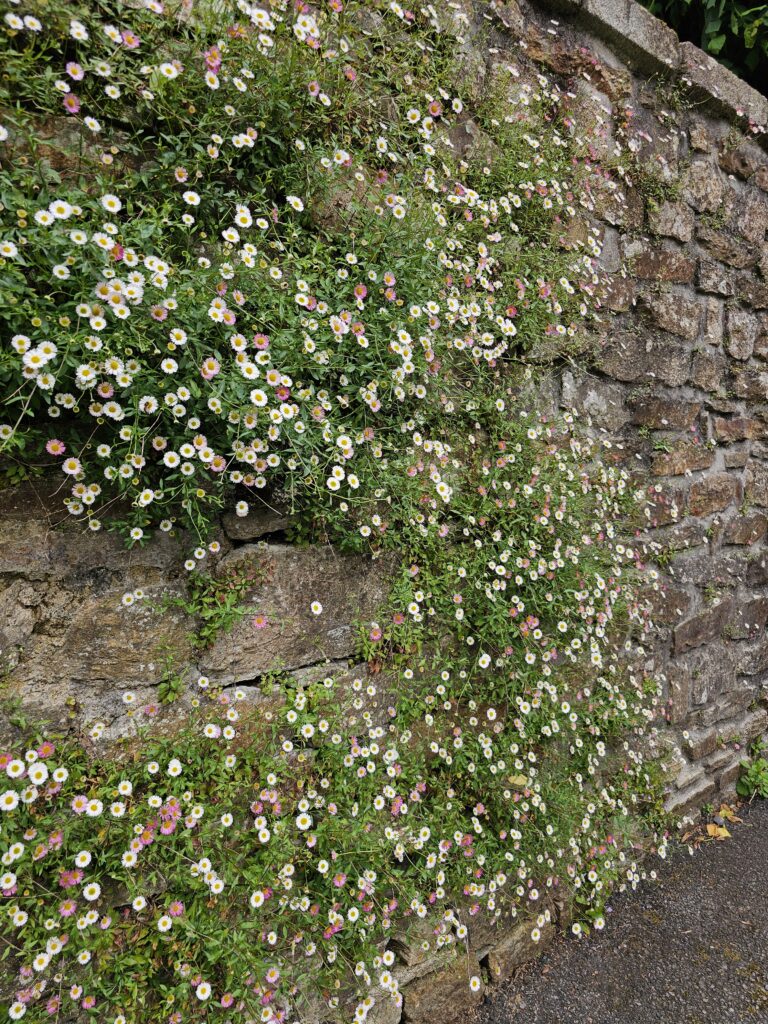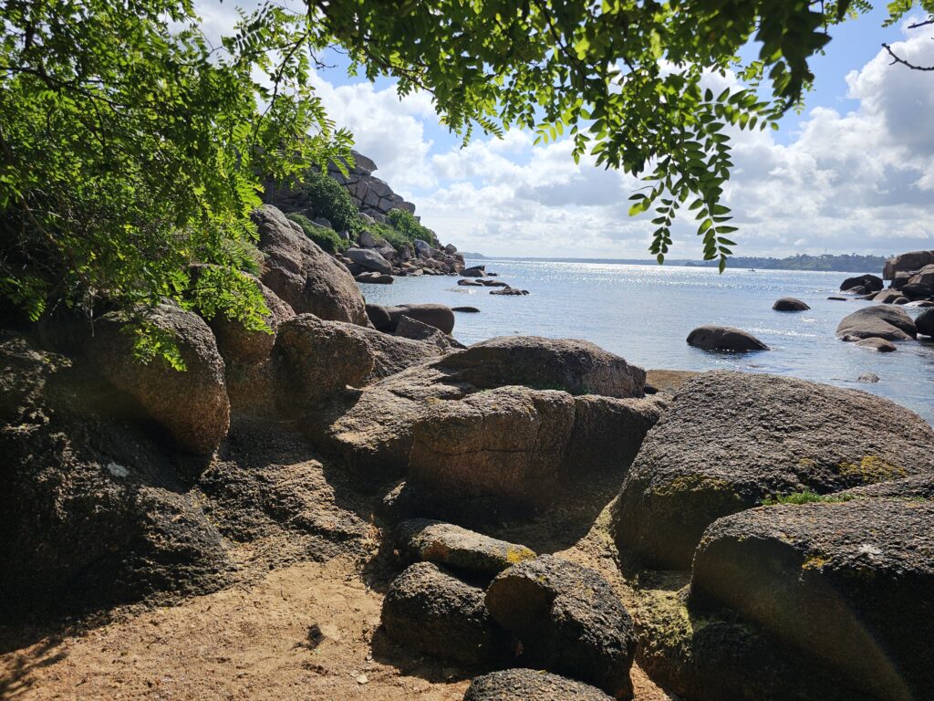 Wir stehen zeitig auf und gehen am Strand mit Rio spazieren was uns hungrig macht. Nach dem Frühstück erledigen wir noch alles was so notwendig ist (Grauwasser leeren, Wassertank füllen usw) danach wollen wir nach Ploumanac’h fahren und die «Granit rose» zu bestaunen. Unterwegs in Trégastel ist plötzlich die Strasse gesperrt aber ohne Signalisation, wo die Umleitung durch geht. Natürlich fahren wir zuerst falsch…. Es ist Markttag und überall sind Fahrzeuge und Marktstände. Wir wenden und finden eine Strasse, die sehr schmal ist. Ich gehe zuerst zu Fuss «rekognoszieren», ob wir da überhaupt weiter kommen mit dem WoMo, der Weiterfahrt steht nichts im Wege. Die Ortschaften, welche wir unterwegs sehen sind wunderschön. Nach einer kurzen Fahrt sind wir bereits in Perros-Guirec, wo das berühmte Naturschutzgebiet «Granit rose» ist. Wir sind erstaunt ab diesen runden Riesen und spazieren lange an der Küste entlang. Vorher hatten wir auf dem Parkplatz ein Baselbieter Paar getroffen, welche gesagt haben, dass schon massenhaft Menschen unterwegs sind – wir haben das nicht so schlimm empfunden. Schaut selber diese schönen Bilder: